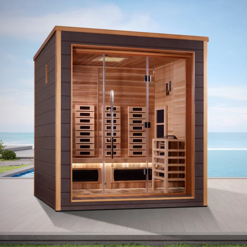 • Traditional (electric or wood-fired) for high-heat immersion and optional steam. Designed with both energy savings and user comfort at the forefront, Hybrid saunas deliver a streamlined appearance, consistent warmth, and adjustable relaxation—whether inside or out.