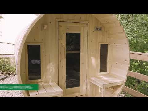 Discover the art of relaxation with the Canadian Timber Collection Sauna by Dundalk LeisureCraft, expertly handcrafted from Eastern White Cedar. This sauna features a striking 5mm bronze tempered glass door with a wooden frame, pre-hung for easy installation. The lighter-colored cedar with its tight knots adds a touch of natural beauty, while the rounded barrel design enhances heating efficiency and airflow. Inside, the aromatic cedar envelops you in soothing warmth, offering a timeless sauna experience. The kit includes solid cedar cradles, aluminum bands with stainless steel hardware, and is designed for easy assembly. Create your personal sanctuary of peace and rejuvenation with this elegant and durable sauna, designed to bring lasting quality and wellness to your home.